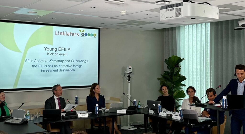 Held in a hybrid format, the Young EFILA’s official kick-off event took place on 8 June 2022 at the Amsterdam office of Linklaters LLP and online. The event featured an Oxford-style debate on the motion: “After Achmea, Komstroy and PL Holdings: the EU is still an attractive foreign investment destination”.